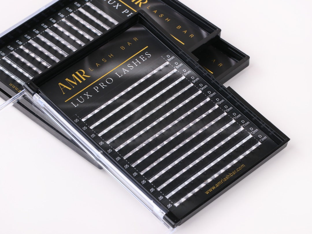 Our LUX PRO Premade lashes come in mixed lengths. The perfect light weight .05 12D lashes in D Curl. Lengths 8mm-13mm. Our LUX PRO Premade Lashes are perfect for those who desire a more uniform look without having to hand make your fans while also cutting down on your service time.